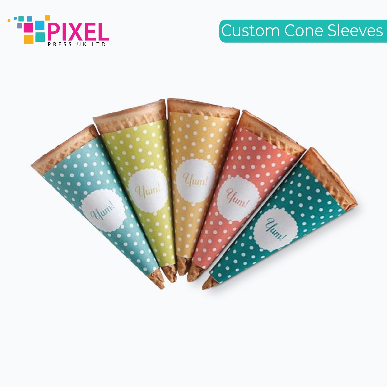 Available in various sizes to fit single cones, multi-cone servings, or specialty dessert cones, these sleeves can be produced with eco-friendly, recyclable materials to support sustainability. Optional finishing options such as matte, gloss, foil stamping, or spot UV can give your packaging a premium look that complements your products.