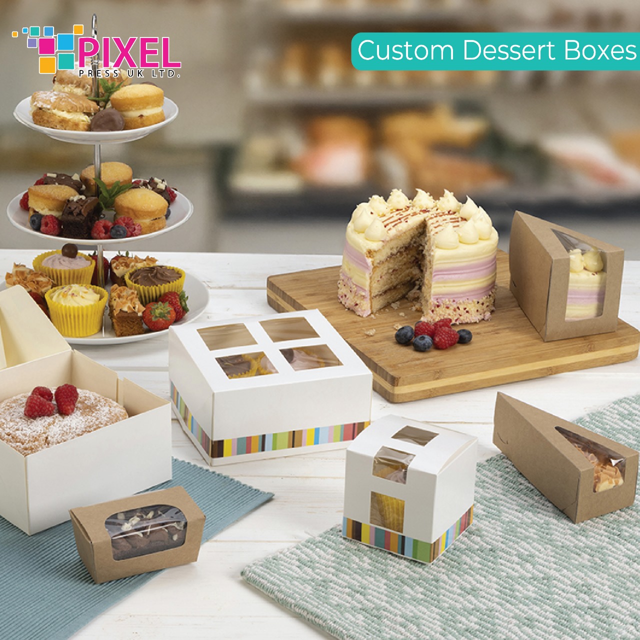 With fully customizable sizes, shapes, and designs, you can create dessert boxes that perfectly represent your brand or occasion. Choose from multiple printing options to feature your logo, artwork, or seasonal themes, while finishing styles like matte, gloss, foil stamping, embossing, and spot UV add a premium touch. For added convenience, these boxes can include die-cut windows, inserts, and handles—making them ideal for both retail display and gifting.